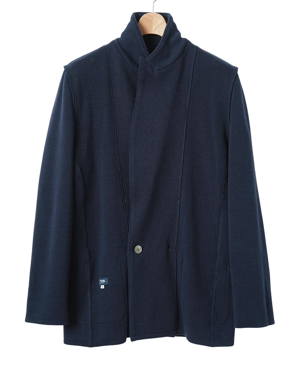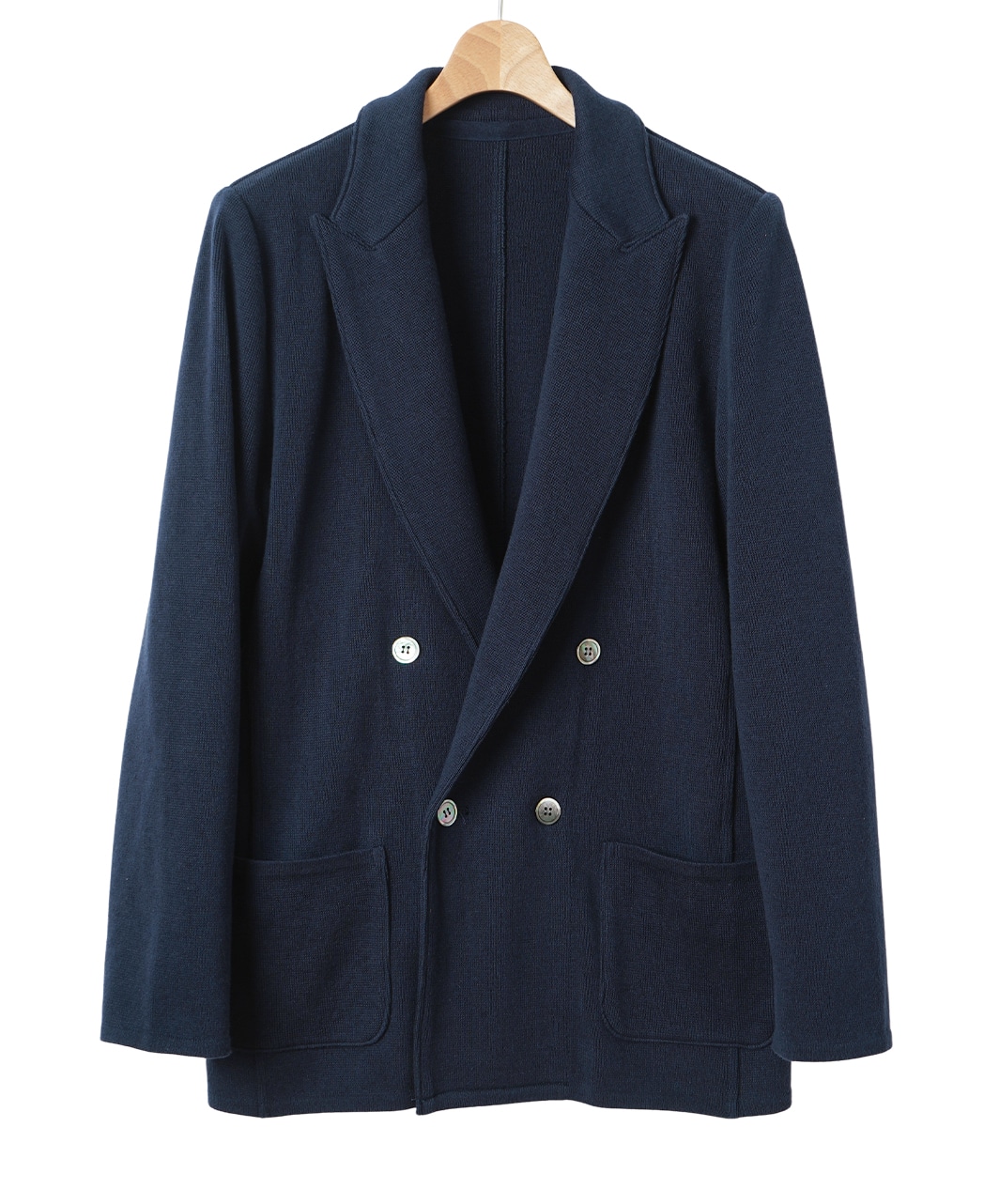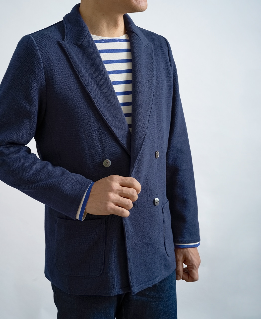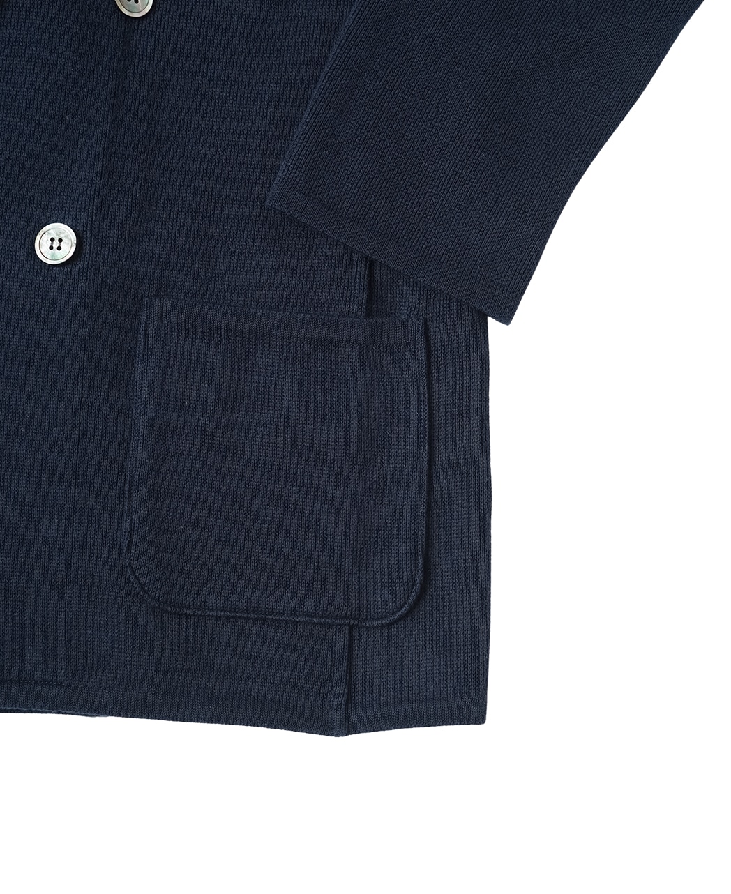 棉麻雙面針織外套,藍色系。採用棉麻混紡的雙面針織面料,觸感柔軟且透氣。針織材質帶來舒適的彈性,適合長時間穿著。精緻的做工展現職人精神。 材質:棉、麻混紡 產地:日本