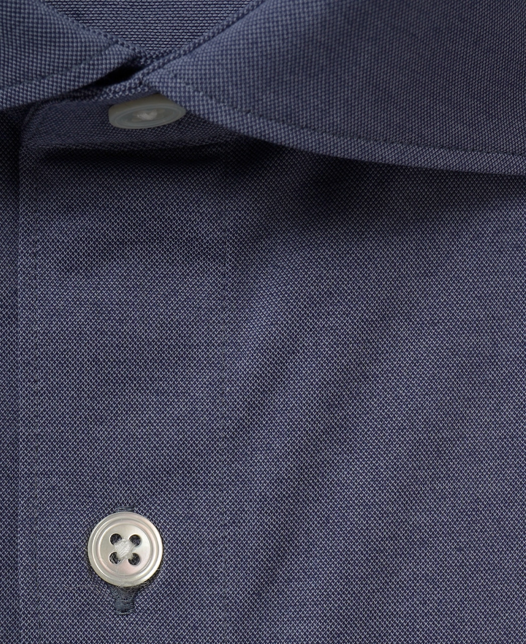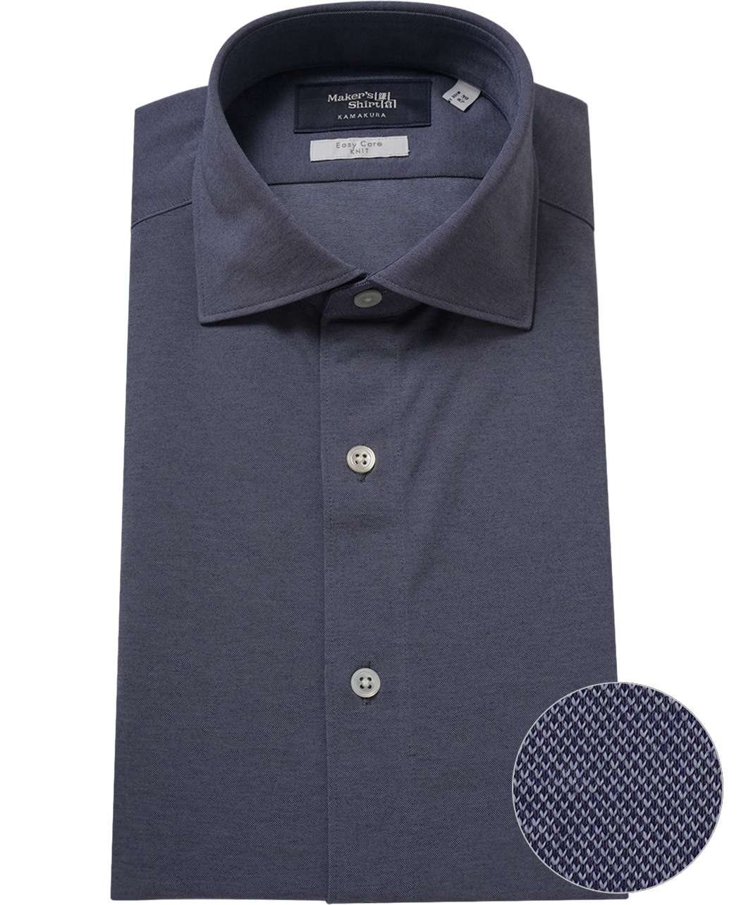 採用高密提花布製作的彈性商務襯衫,灰藍色。沉穩的灰藍色調展現成熟穩重氣質,提花織紋增添面料層次感。彈性設計適合長時間穿著。 材質:棉混紡(含彈性纖維) 產地:日本