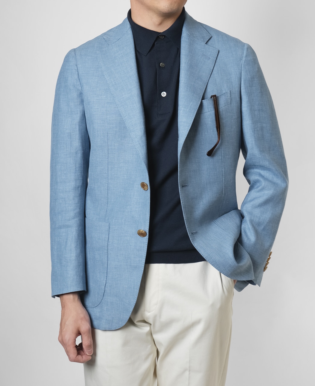鎌倉襯衫 精裁師式羊毛亞麻絲混紡外套(藍色系)
